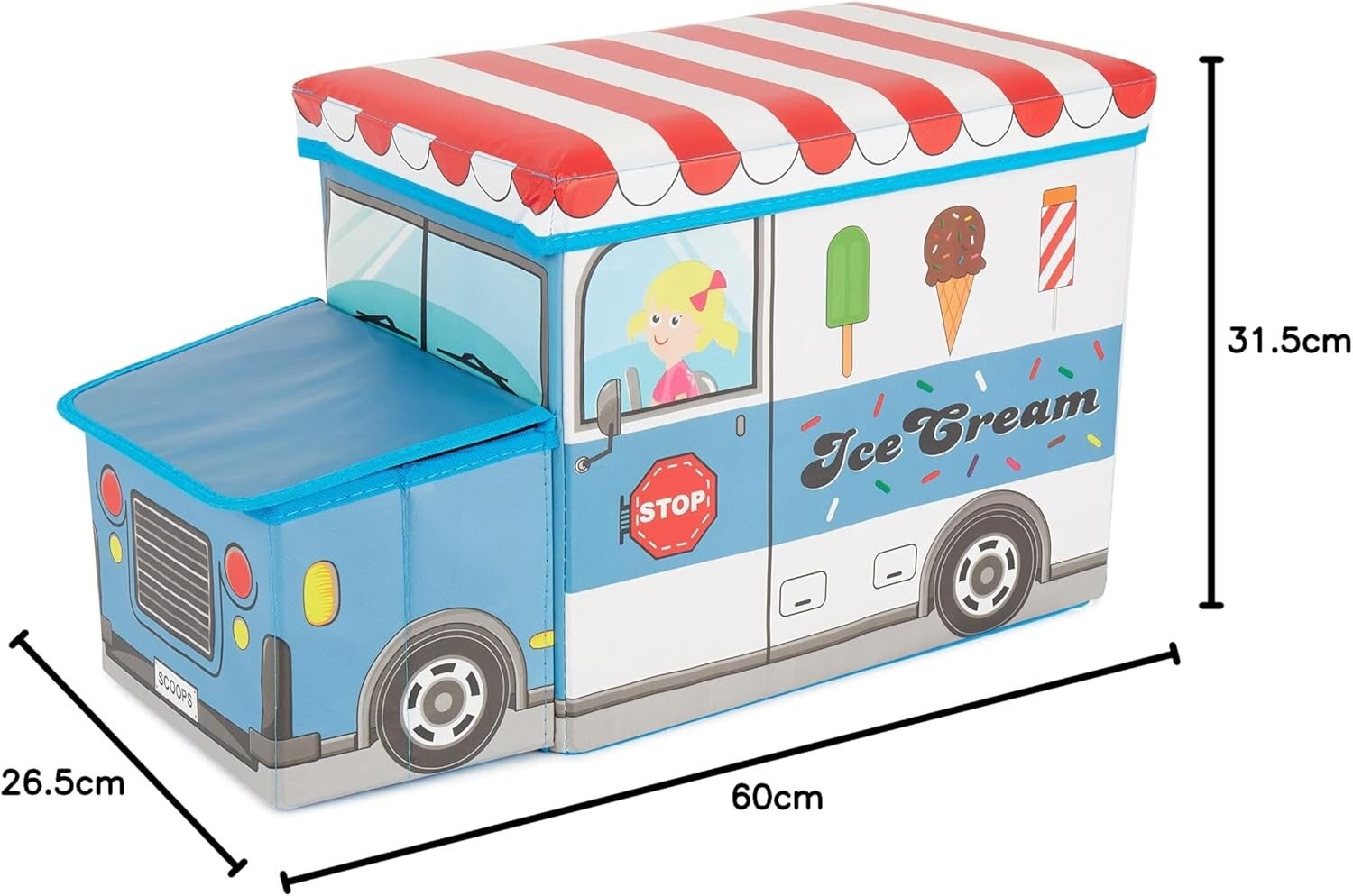 - Stevige opbergbox in de vorm van een blauwe ijscowagen