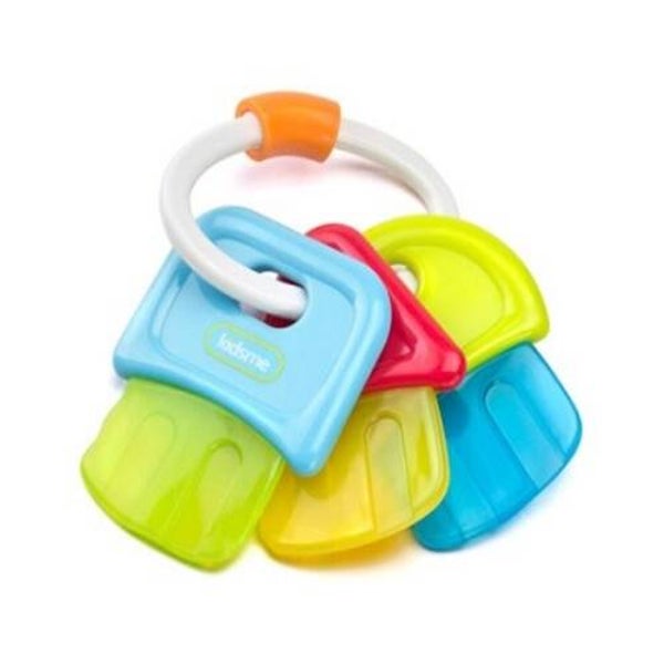 Drie kleurrijke sleutels met afgeronde randen, perfect voor wanneer uw kindje tandjes krijgt. Het handvat is gemakkelijk vast te pakken en maakt een zacht ratelend geluid wanneer het wordt geschud.