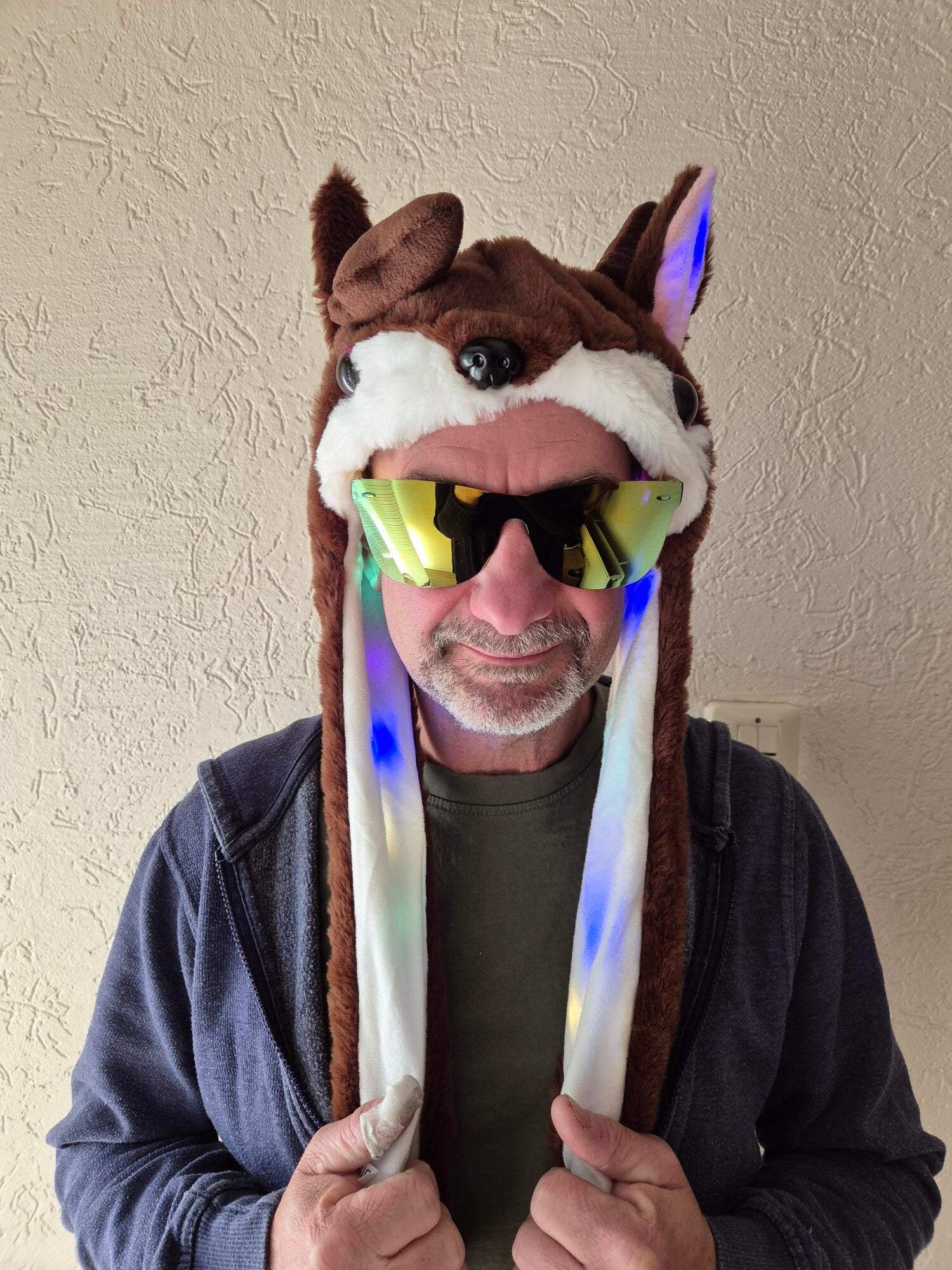 leuke led muts "ree".met verlichting in de oren en poten.als je in de pootjes knijpt gaan de oren omhoog staan.incl baterijen