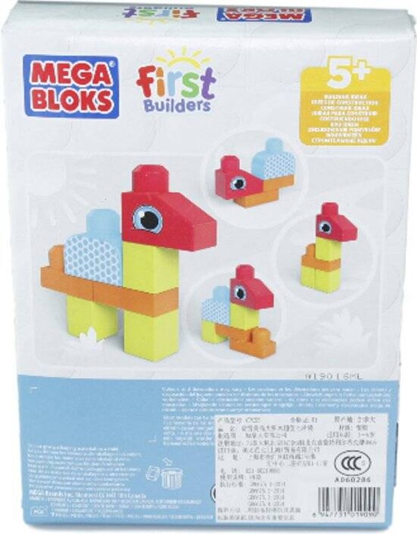 De doos bevat wel 7 blokken in verschillende kleuren en vormen. Het stapelen en bouwen met de leuke blokken in verschillende vormen Mega First Builders-blokkenset van mega bloks. bevorderd de oog-handcoördinatie en het inzicht van de kleintjes.